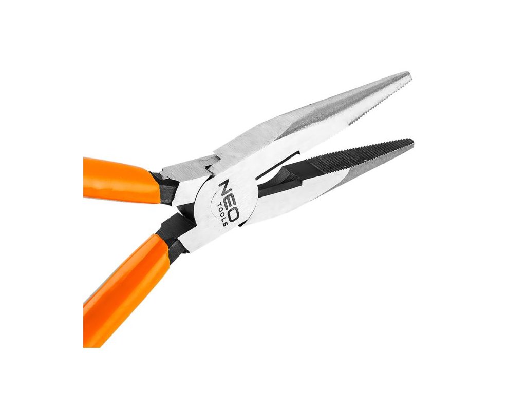 Prodloužené rovné kleště NEO TOOLS 160 mm (01-273) jsou kvalitním a univerzálním nástrojem určeným pro profesionály i náročné kutily. Díky štíhlému tvaru čelistí a délce 160 mm umožňují pohodlný přístup i do hůře dostupných míst.