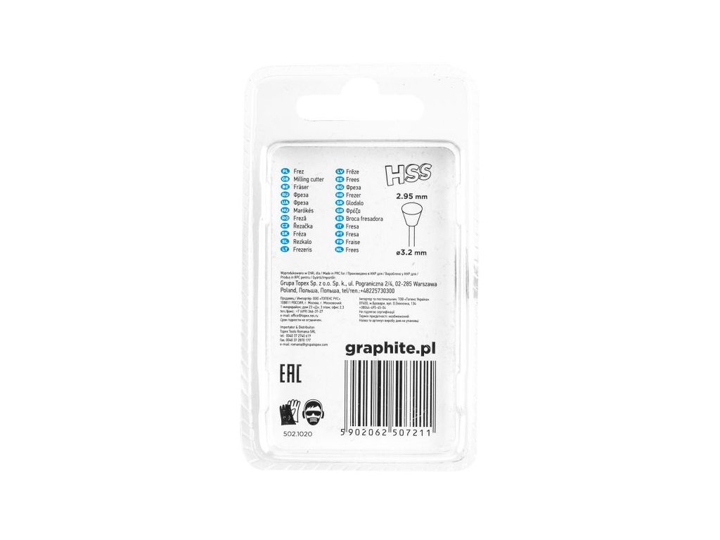 HSS fréza HSS GRAPHITE (ref. 55H064) ve tvaru lichoběžníku o průměru 2,95 mm.