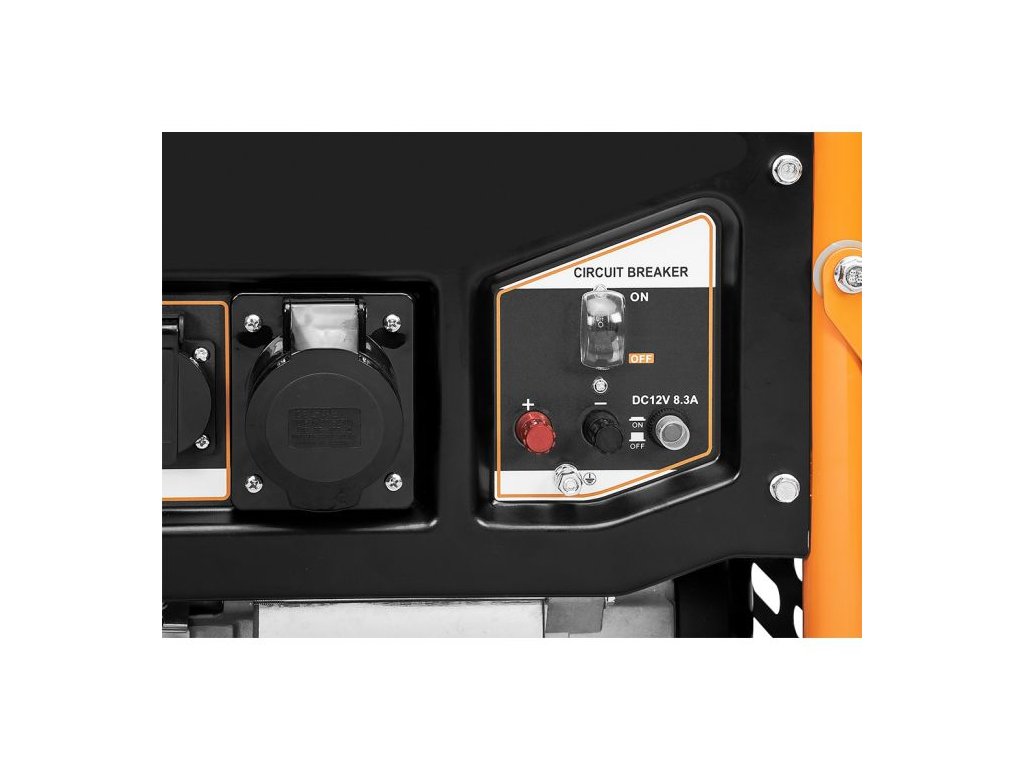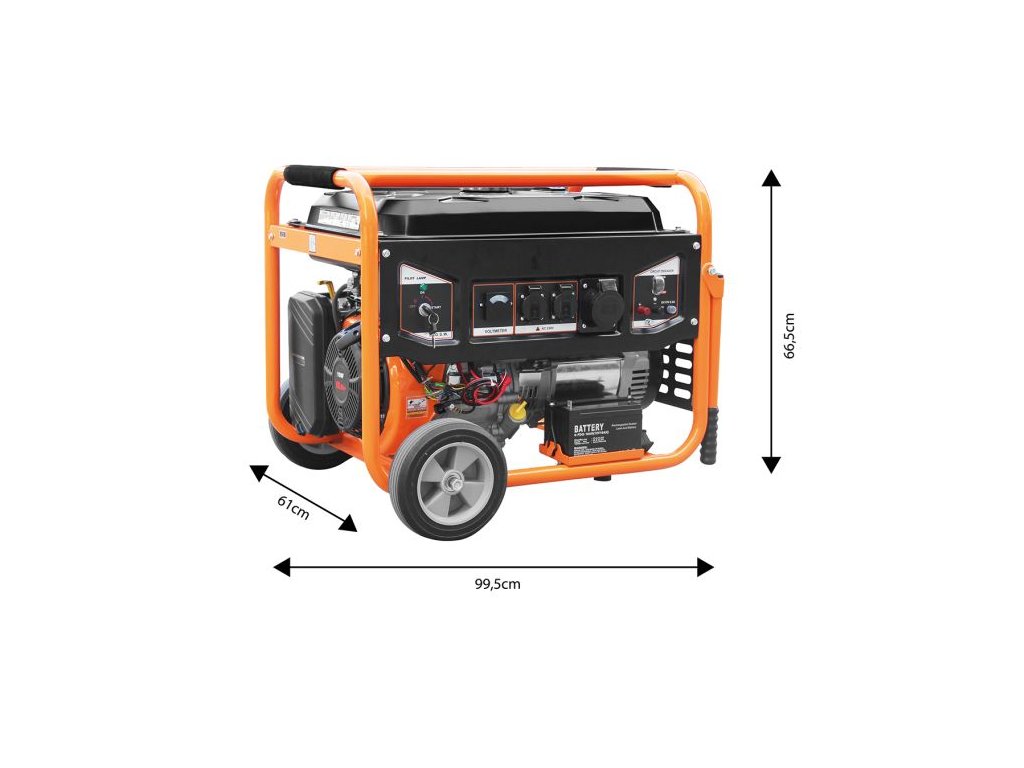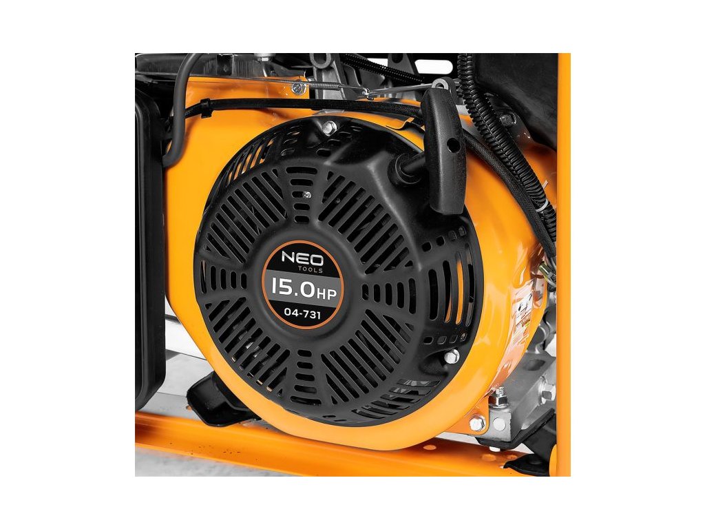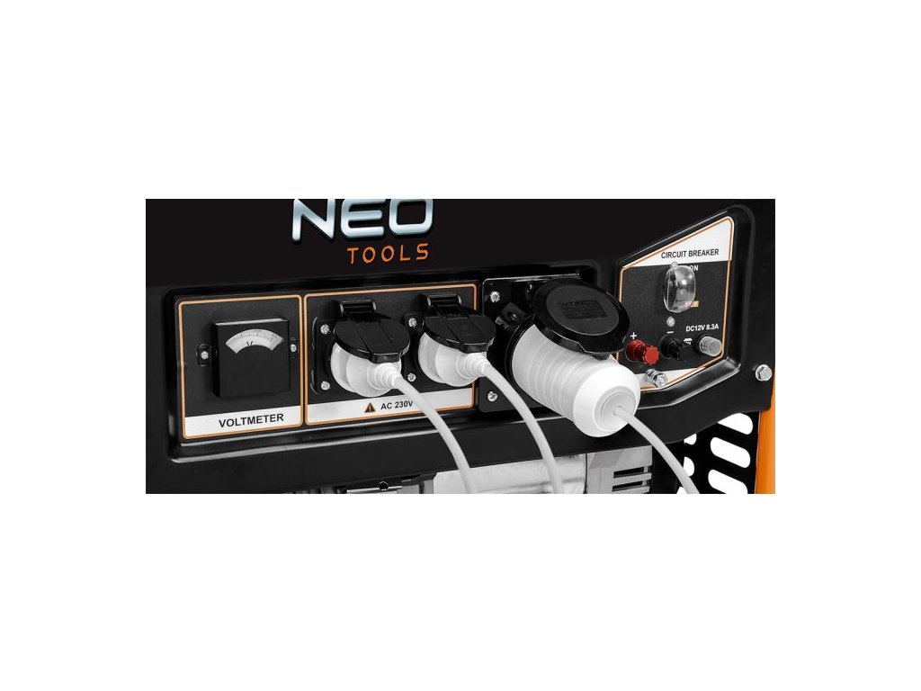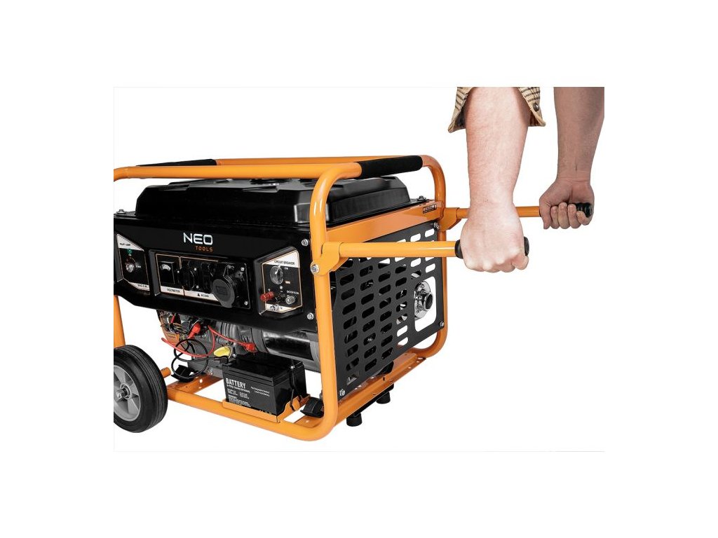 Solidní generátor o maximálním výkonu 6,5 kW značky NEO umožňuje napájet elektrická zařízení v místech bez přístupu k síti. Startuje se zapalováním a je vybaven čtyřdobým účinným zážehovým motorem o výkonu 11 kW/15 k. Doporučená paliva jsou 92, 95 a 98 a olej SAE15W-30. Agregát má nádrž o objemu 25 litrů a nádobu na motorový olej o objemu 1,1 litru.