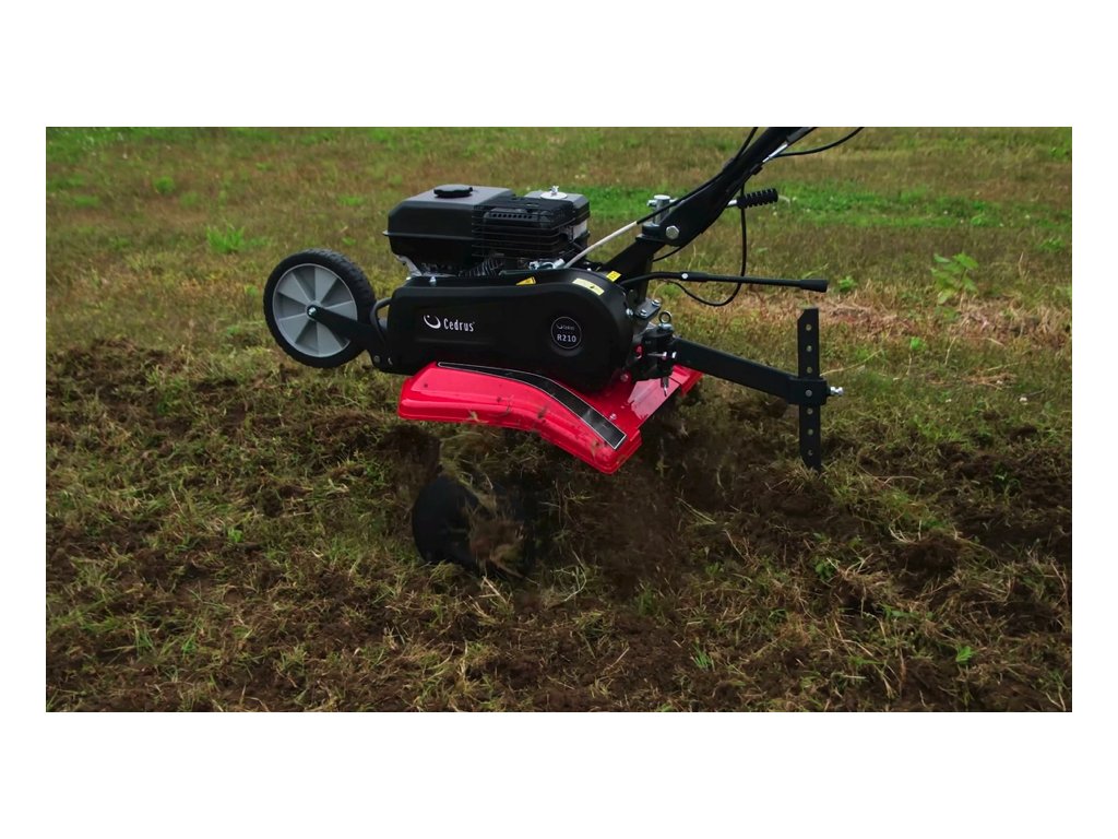 Kultivátor Cedrus CEDRUSGL05 je vysoce výkonný kultivátor určený pro práci na větších pozemcích. Je vybaven motorem Rato R210 o výkonu 4,2 kW, který umožňuje dosažení otáček 3600 ot./min. Kultivátor má možnost nastavení šířky pracovního záběru v rozsahu 30–85 cm a hloubky až 36 cm. K dispozici jsou 2 rychlosti vpřed a 1 zpětný, což usnadňuje manévrování v různých terénech. Zařízení je určeno pro práci na plochách do 3000 m², což ho činí ideálním pro farmáře nebo zahrádkáře, kteří potřebují efektivně připravit půdu na setí nebo výsadbu. Výrobek je dodáván s pumpovanými koly a možností připojení různých příslušenství. Nezapomeňte doplnit olej do převodovky před prvním použitím.
