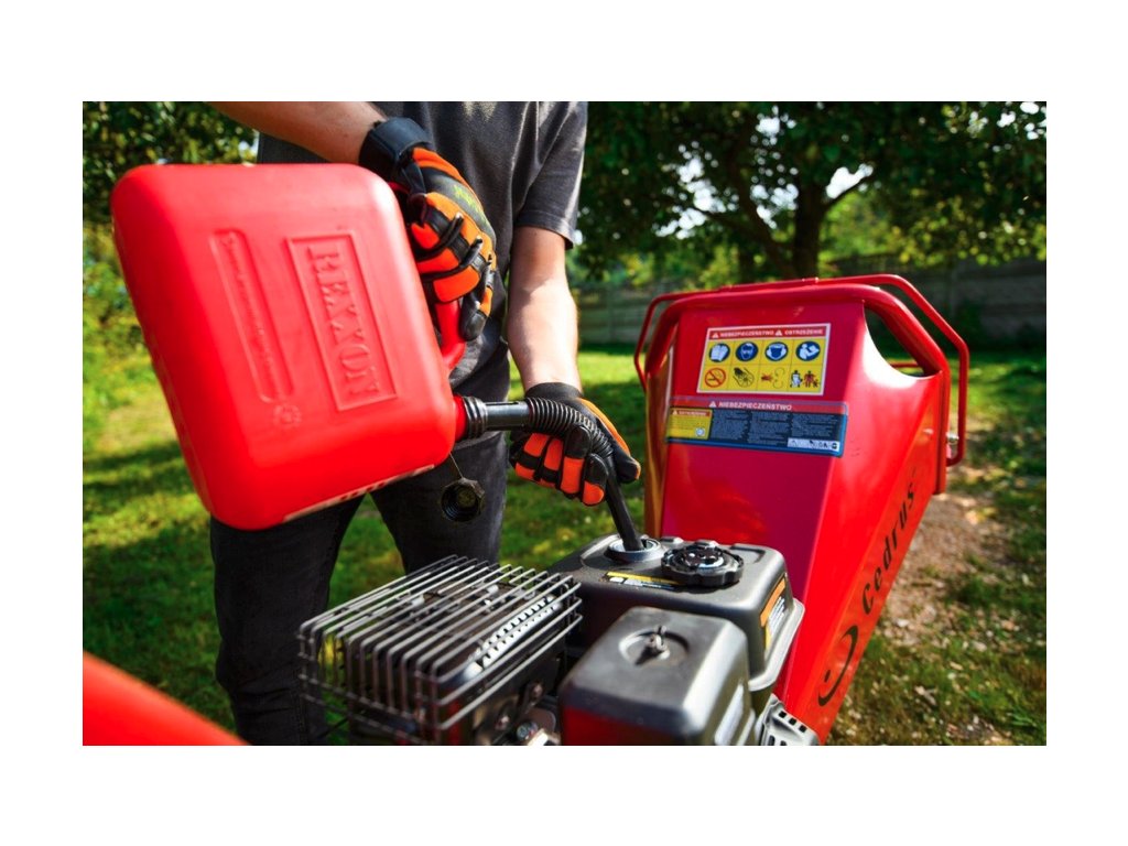 Benzínový drtič Cedrus CEDRB02PRO je určen pro profesionální použití při zpracování dřevního odpadu, větví a křovin do průměru až 12 cm. Je vybaven výkonným čtyřtaktním motorem Loncin LC170F o výkonu 4,4 kW, který umožňuje vysoký pracovní výkon bez nutnosti elektrického připojení.