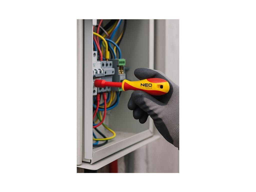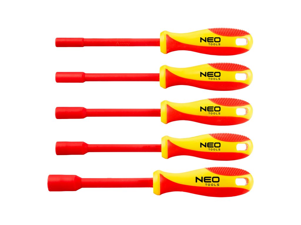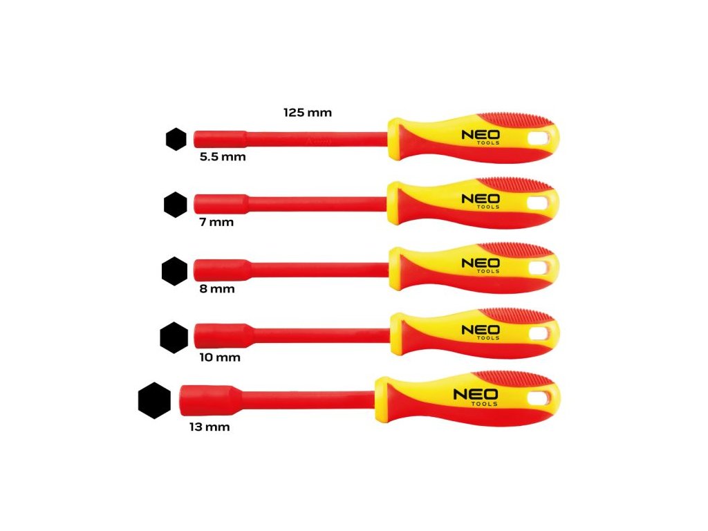 Sada izolovaných nástrčných šroubováků NEO TOOLS 04-145 je navržena pro profesionální i domácí použití při práci s elektrickými instalacemi.