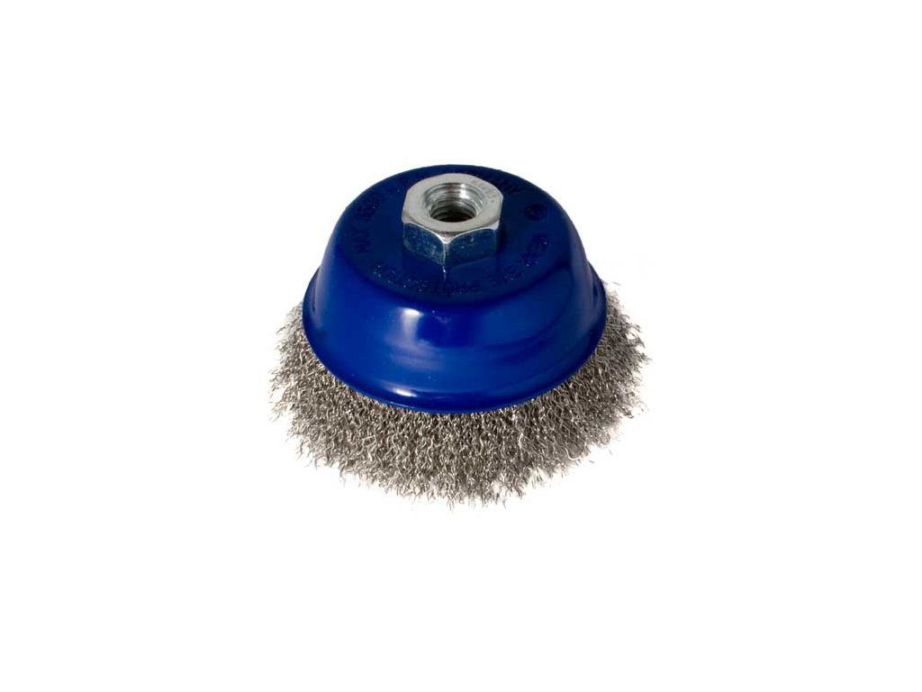 Kartáč hrnkový 100 mm, vlnitý drát nerez SS 0,30 mm, závit M14x2