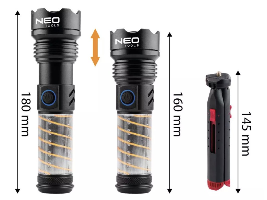 Kempovací svítilna NEO TOOLS 2 v 1 je praktický a všestranný zdroj světla navržený pro aktivní použití v přírodě i v běžném provozu. Díky kombinaci ruční svítilny a kempingové lucerny nabízí maximální flexibilitu při osvětlení prostoru i cíleném svícení na dálku.