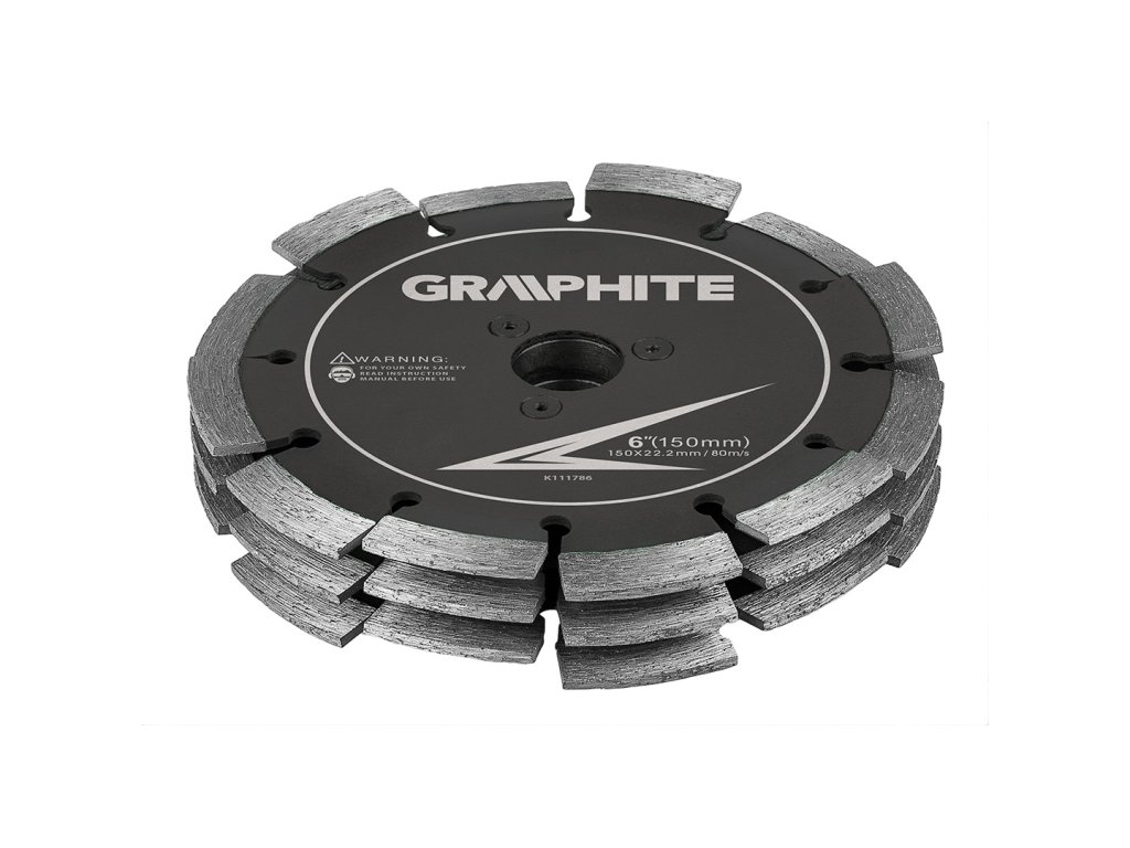 Diamantový kotouč GRAPHITE Compound je profesionální příslušenství navržené speciálně pro drážkovačku do stěn GRAPHITE 59G371. Díky integrované konstrukci tří vzájemně propojených disků umožňuje vytvořit plnohodnotnou drážku o šířce 30 mm v jednom pracovním kroku, čímž výrazně šetří čas i námahu při elektroinstalačních a stavebních pracích.