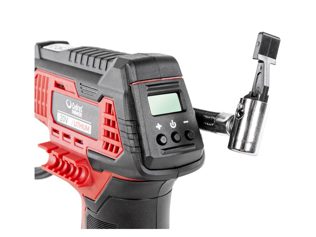Akumulátorový kompresor Cedrus CEDAP100LI je navržen pro pohodlné použití v domácím i mobilním prostředí. Díky kompaktní konstrukci, nízké hmotnosti a napájení z 20V akumulátoru je skvělou volbou pro každodenní potřeby – od huštění kol, míčů až po nafukování příslušenství na pláž. Kompresor je vybaven LCD displejem s možností nastavení tlaku (20–690 kPa / 3–100 PSI), LED světlem pro práci ve tmě, automatickým vypnutím po dosažení požadovaného tlaku a ochranou proti přetížení i přehřátí. V balení najdeš různé adaptéry pro univerzální využití.