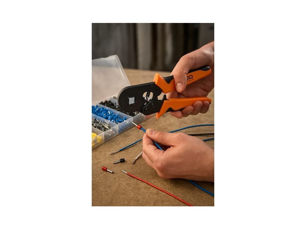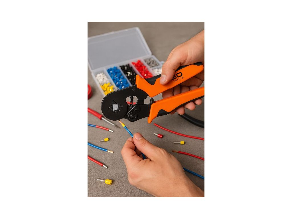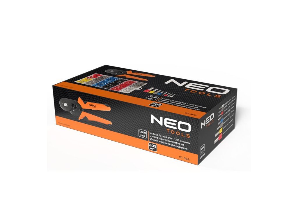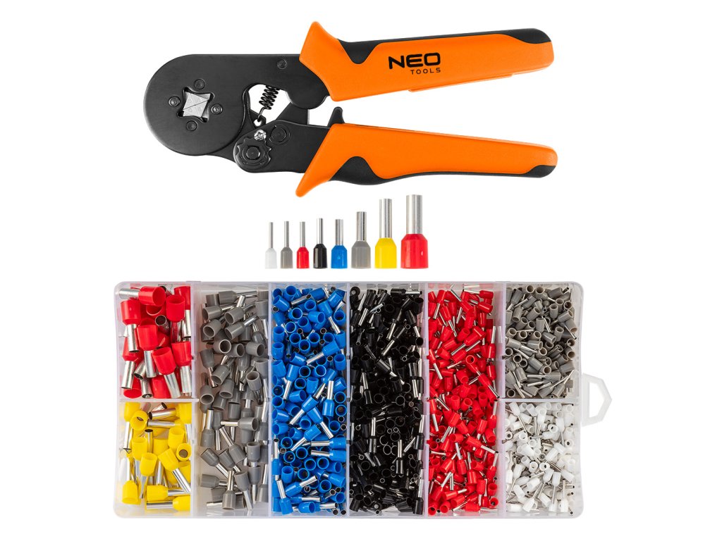 Krimpovací kleště na konektory NEO TOOLS 01-562 představují kompletní sadu pro lisování dutinek a konektorů.