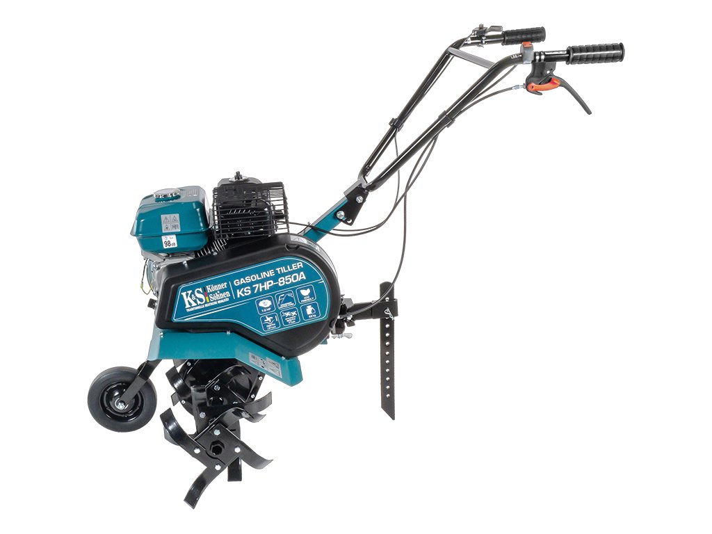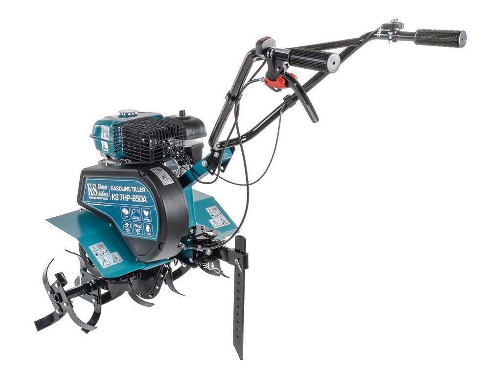 Kompaktní kultivátor model KS 7HP-850A je vybaven kolečky, která zajišťují lepší manévrovatelnost i na malých pozemcích. Model kultivátoru je vhodný pro uložení přídavných přídavných zařízení (hrůbkový pluh, podrývák, vyorávač brambor, vhodný pro pneumatická kola s vysokým vzorkem).