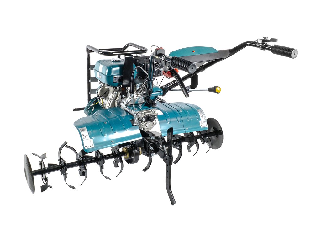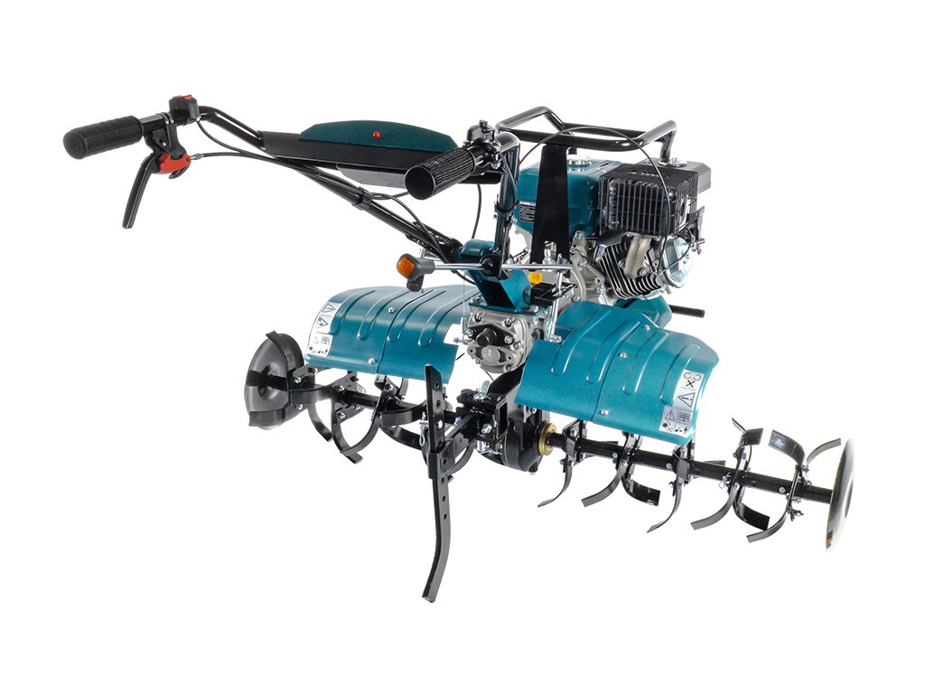 Díky kovaným čepelím ve tvaru šavle je kultivátor vhodný pro zpracování jakéhokoliv typu půdy - panenskou i dobře obdělávanou. K ochraně rostlin při obdělávání slouží štíty. Frézy se skládají ze 4 nožů. Součástí jsou kovové disky.