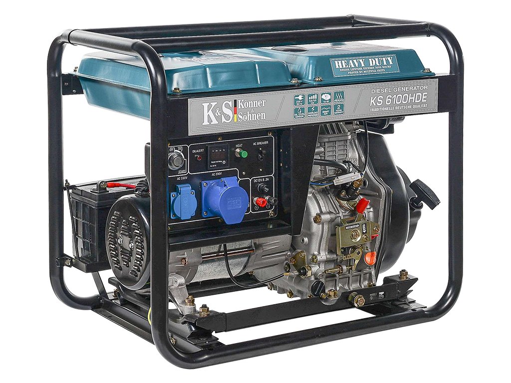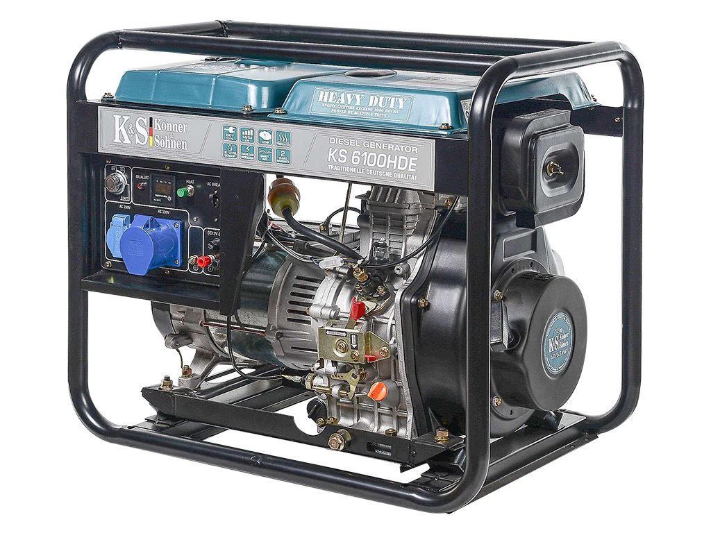 KS 6100HDE (EURO V) je výkonná naftová elektrocentrála řady HEAVY DUTY, která se pyšní robustní zesílenou konstrukcí, jež chrání nádrž před poškozením i během přepravy. Je vybavena výkonným značkovým motorem Könner & Söhnen, který lze použít nejen jako záložní zdroj energie, ale i k nepřetržitému provozu. Mimo jiné je elektrocentrála vybavena předehřívačem, který umožňuje snadné spuštění elektrocentrály i v zimě. Inteligentní stabilizační systém AVR umožňuje udržovat konstantní napětí 230 V a chrání tak elektrocentrálu před nežádoucími zkraty.