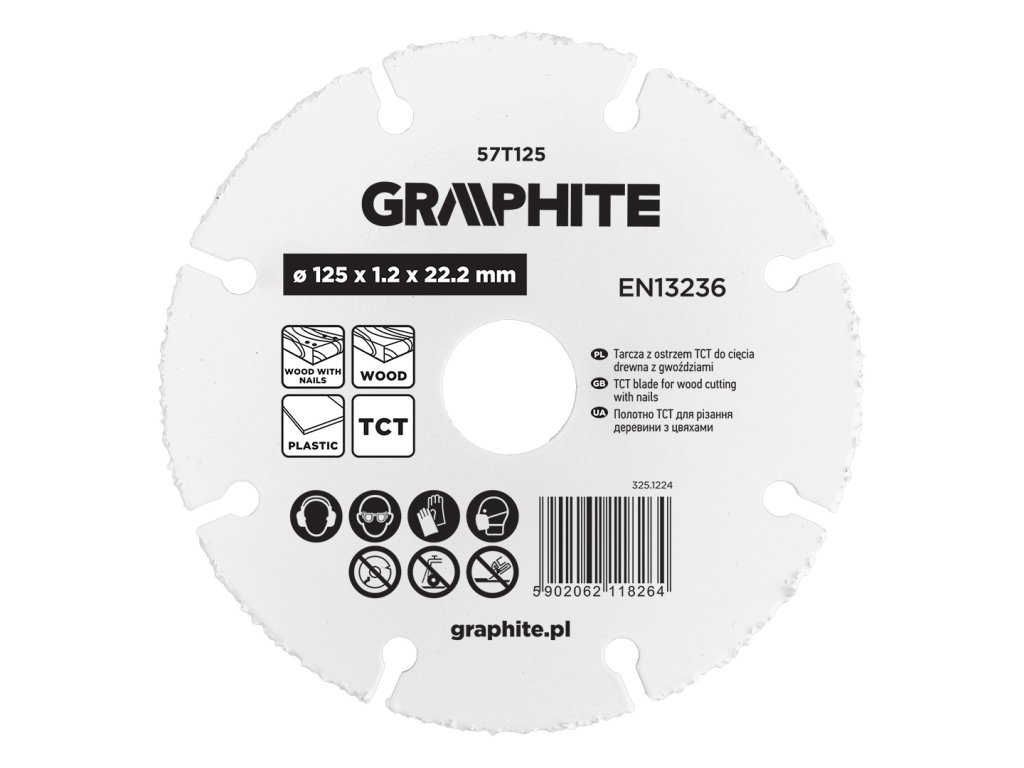 Řezný kotouč GRAPHITE 57T125 je odolný pilový list vybavený tvrdokovovými břity (TCT), které zajišťují čistý řez a dlouhou životnost i při náročném použití. Díky své konstrukci umožňuje řezání nejen dřeva a plastů, ale také dřeva obsahujícího hřebíky, což z něj dělá univerzální nástroj pro stavbu, dílnu i renovace.