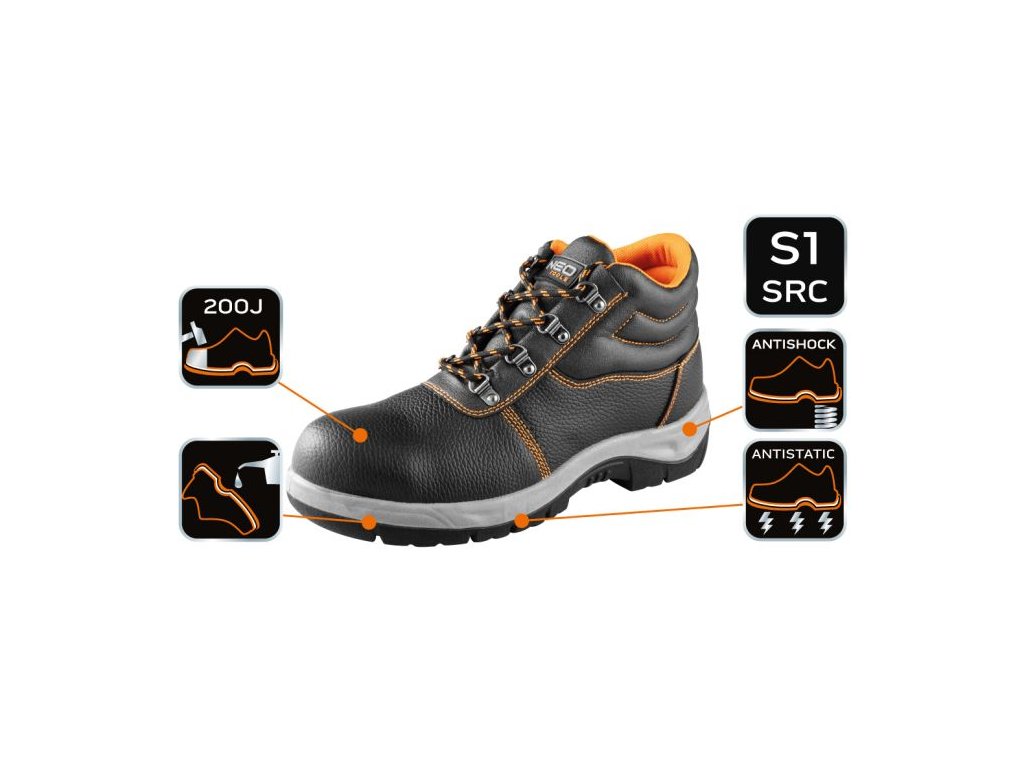 Kožená obuv NEO je zárukou bezpečnosti, pohodlí a módního designu i pro každodenní použití. Obuv patří do ochranné kategorie S1 a splňuje přísné požadavky na úkoly, pro které je určena.