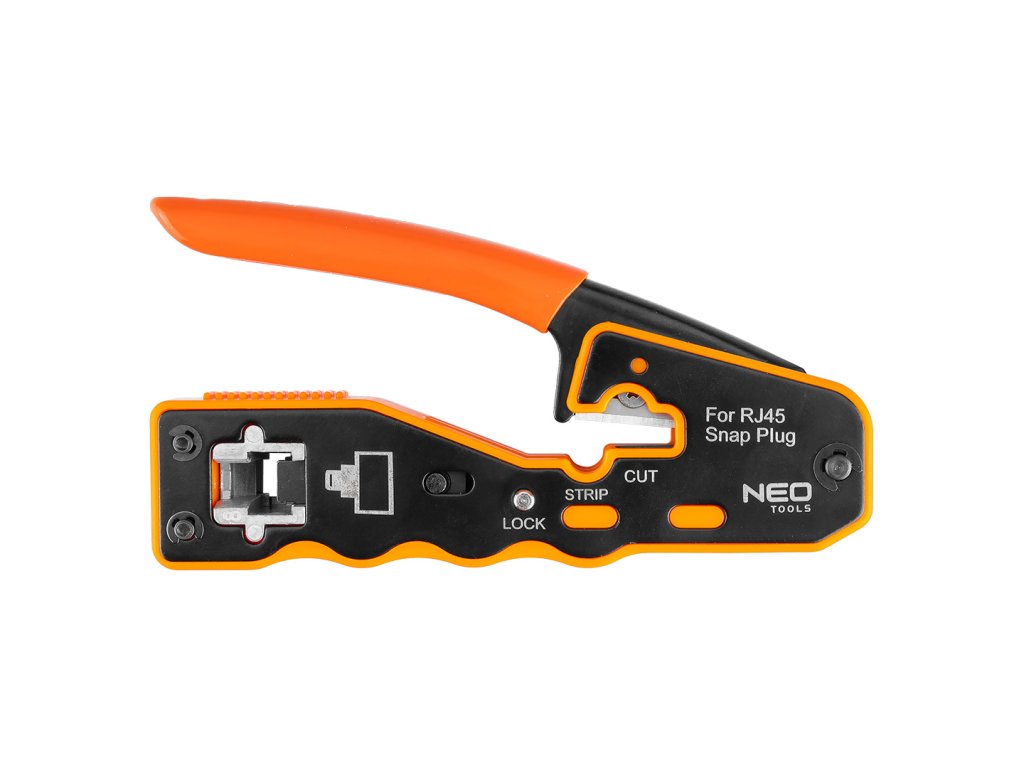 Kleště pro lisování průchozích konektorů RJ45, 01-564 od společnosti NEO TOOLS, se vyznačují délkou 135 mm. Jsou vyrobeny z uhlíkové oceli a jejich rukojeti jsou z odolného plastu. Jsou vybaveny štípacími kleštěmi, odizolovačem vodičů a pojistkou ostří. Nářadí značky NEO TOOLS je určeno ke krimpování internetových a telefonních kabelů. Osvědčí se při mnoha úkolech.Doplňkové parametry