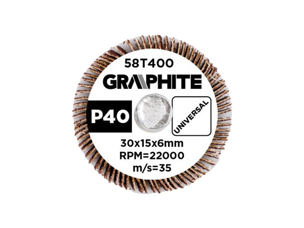 Lamelový kotouč GRAPHITE 58T400 je odolný brusný nástroj vhodný pro náročné použití v dílně i průmyslu. Díky rozměrům 30 × 15 × 6 mm se osvědčí při broušení úzkých a těžko dostupných míst, kde běžné kotouče nepostačují.