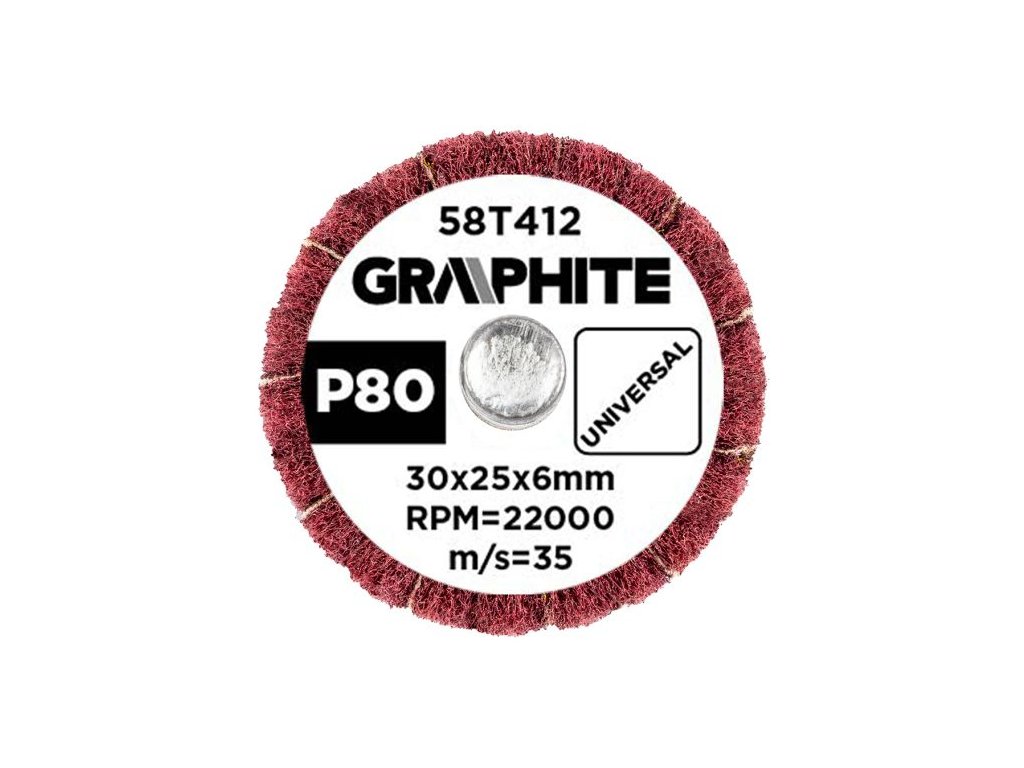 Lamelový kotouč GRAPHITE (30 × 25 × 6 mm, P80) je spolehlivé brusné příslušenství, které se hodí pro univerzální broušení i dokončovací práce. Díky kompaktním rozměrům je ideální pro práci v úzkých a hůře dostupných prostorech, kde standardní kotouče nepostačí.