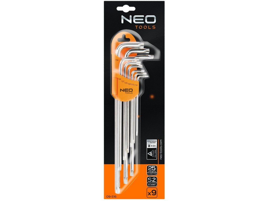 NEO sada klíčů Torx (ref. č. 09-516) obsahuje 9 klíčů velikosti T10 až T50.