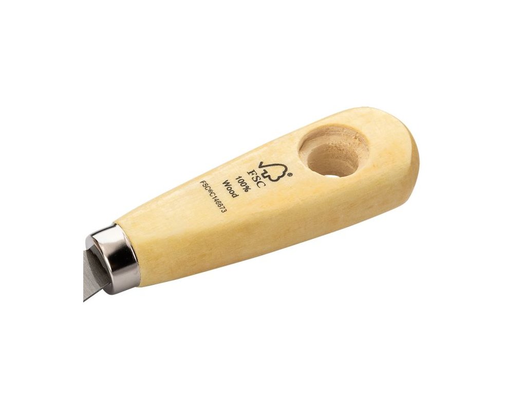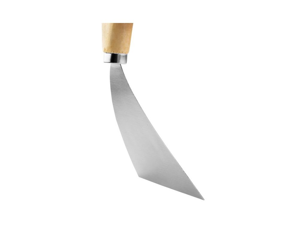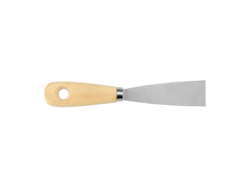 Je opatřena pevnou dřevěnou rukojetí, která zajišťuje pohodlný úchop a přesné vedení při práci. Špachtle se hodí nejen pro nanášení a roztírání tmelů, ale i pro odstraňování starých vrstev nátěrů či lepidel.