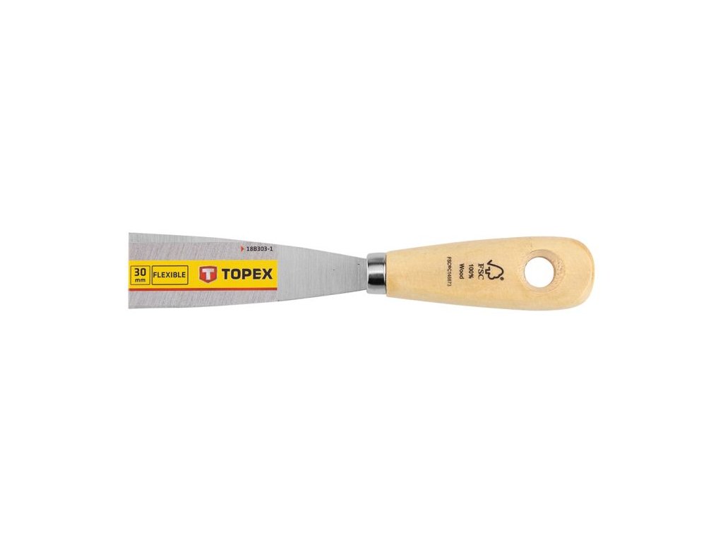 Špachtle na tmel TOPEX 18B303-1 je praktický nástroj určený pro přesné a jemné práce. Díky úzké čepeli o šířce 30 mm je vhodná zejména pro menší opravy, detailní tmelení spár nebo vyrovnávání nerovností na malých plochách.