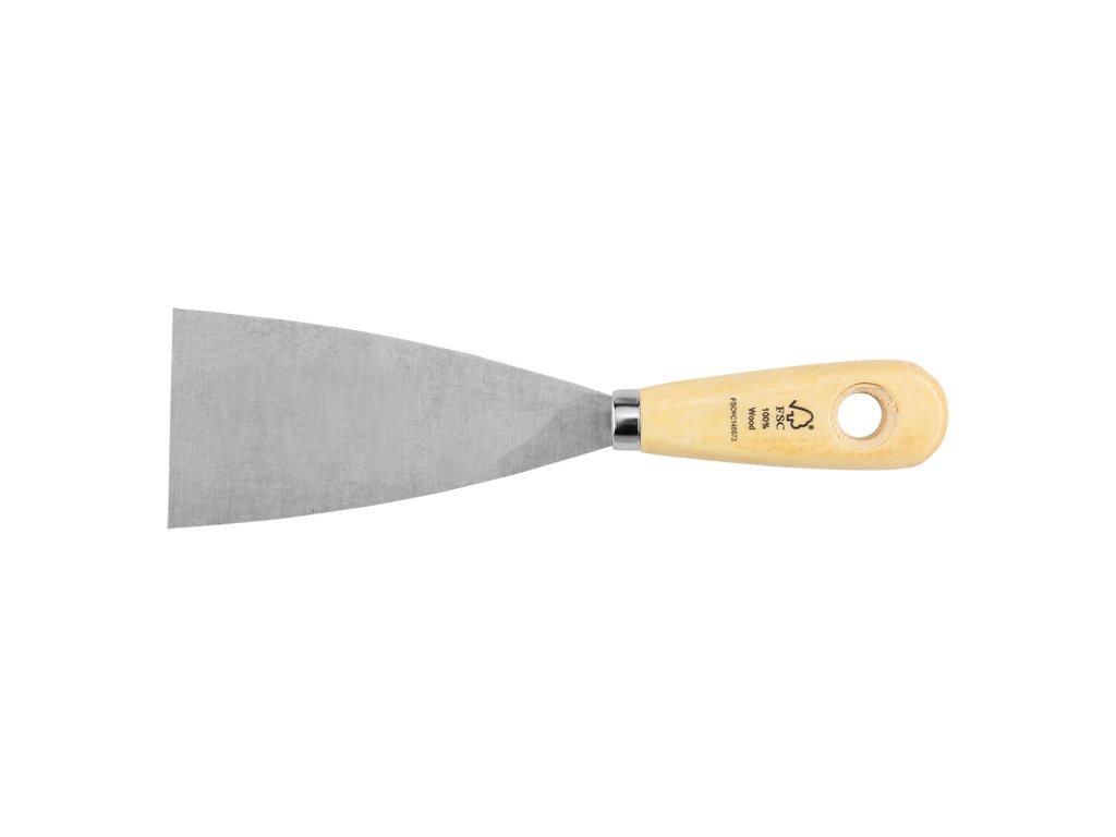 Je vybavena ergonomickou dřevěnou rukojetí, která zajistí pohodlný a pevný úchop při práci. Díky své univerzálnosti je tato špachtle vhodná nejen pro aplikaci tmelů, ale také pro vyrovnávání povrchů a odstraňování starých vrstev barev, tapet či lepidel.