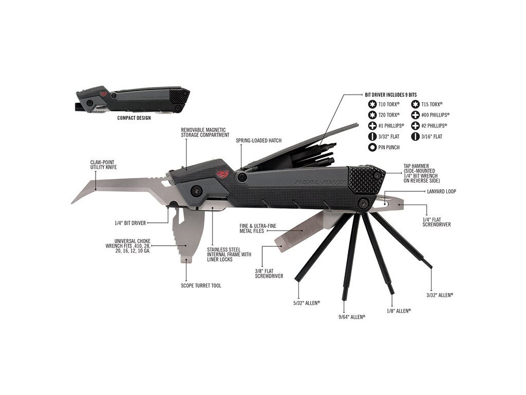 Multifunkční nástroj 30 v 1 GUN TOOL PRO-X od Real Avid je sice charakteristický poměrně malou velikostí, zároveň však dokáže velké věci. Vždyť v sobě kombinuje bezmála 30 užitečných nástrojů!