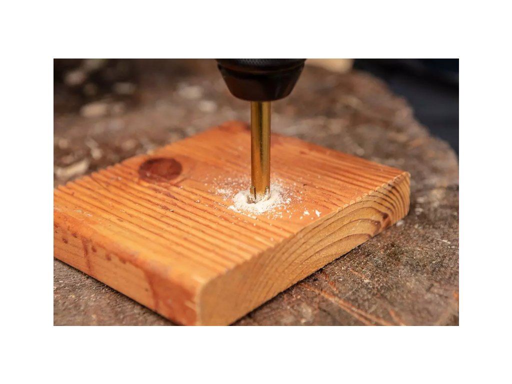 Vrták má 4 břity a je vyroben z karbidu wolframu s titanovým povlakem.