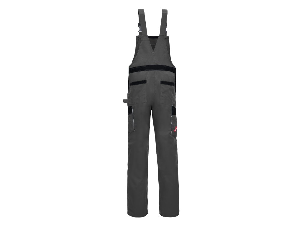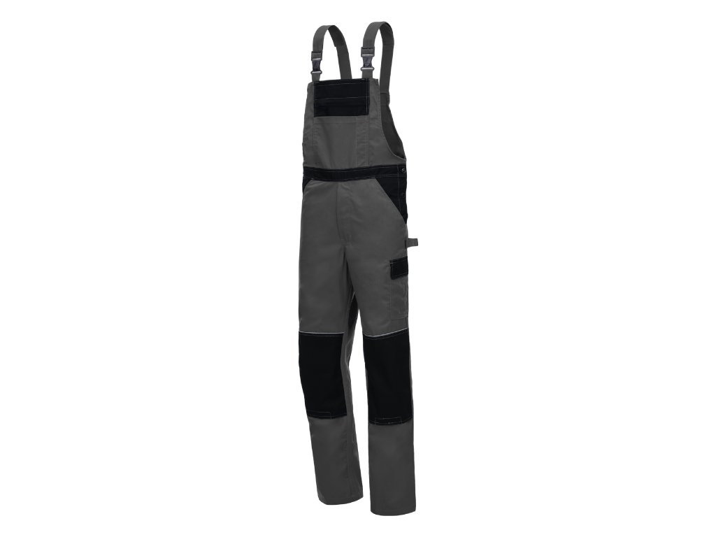 NITRAS MOTION TEX LIGHT pracovní kalhoty s náprsenkou v kombinaci šedé a černé (kód barvy: 1210) jsou navrženy s důrazem na komfort a funkčnost. Vyrobené z lehkého a prodyšného materiálu o hmotnosti 245 g/m², tyto kalhoty poskytují vysoký komfort nošení i při dlouhodobé práci. Elastický pas umožňuje flexibilitu při pohybu, zatímco zesílené oblasti na nohavicích, kolenech a zadních kapsách zvyšují jejich odolnost.