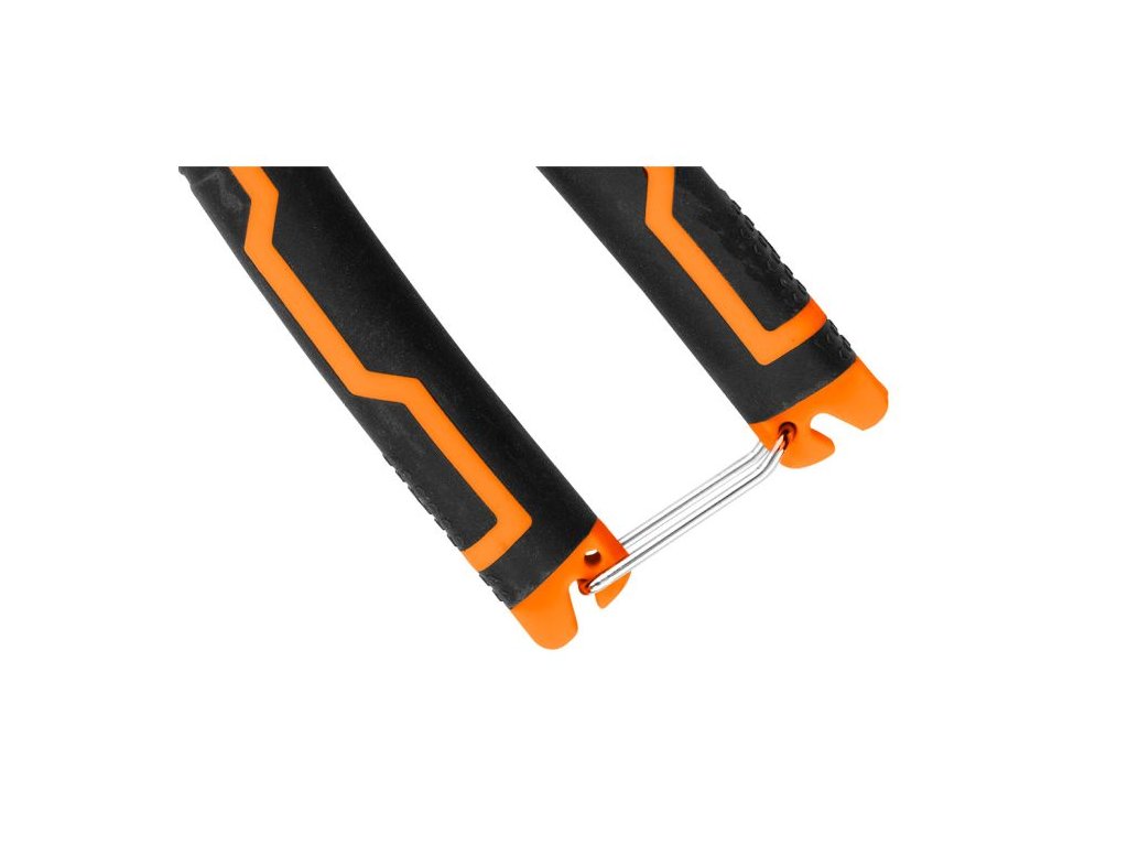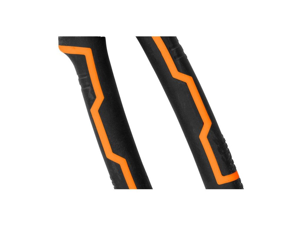 Rukojeť je dvoukomponentní, ergonomicky tvarovaná, což zajišťuje jistý úchop, komfort při práci a větší bezpečnost.