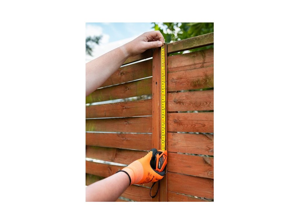 Měřicí pásmo má magnetickou koncovku pro snadné uchycení na kovové povrchy. Stupnice je chráněna lesklým povlakem proti oděru a doplněna o nylonovou úpravu, která zvyšuje životnost. Vestavěný tlumič nárazů umožňuje plynulé a bezpečné zasunutí pásma.