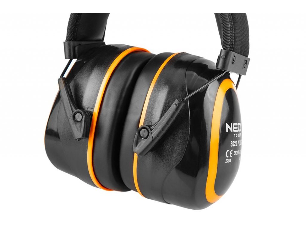 Mušlové chrániče sluchu, 97-563, NEO, určené pro ochranu sluchu ve vysoce hlučném prostředí Jsou vhodné jak pro profesionální práce vyžadující ochranu sluchu, tak pro domácí dílny. Měkká povrchová úprava chráničů sluchu je vyrobena z houby a zajišťuje správné pohodlí při používání po mnoho hodin. Flexibilní čelenka se snadno přizpůsobí tvaru hlavy a zajišťuje pohodlí. Díky nastavení přítlačné pružiny umožňují chrániče sluchu přesné přizpůsobení hlavě bez skřípnutí.