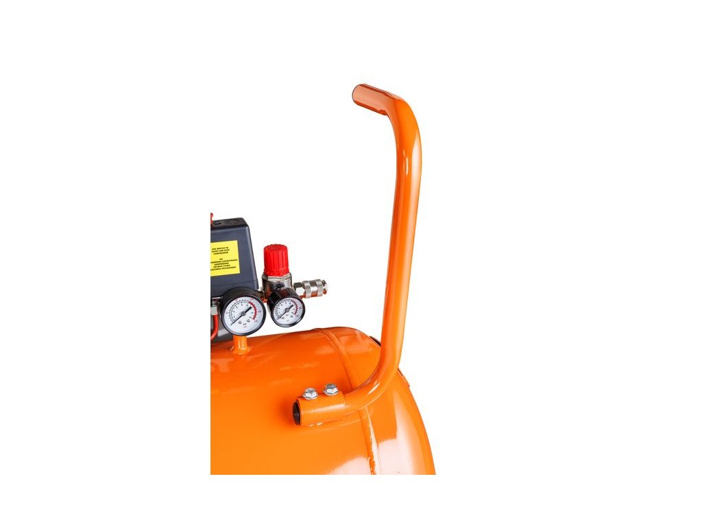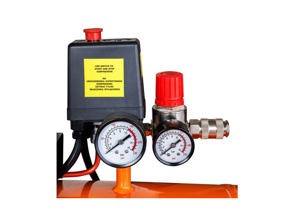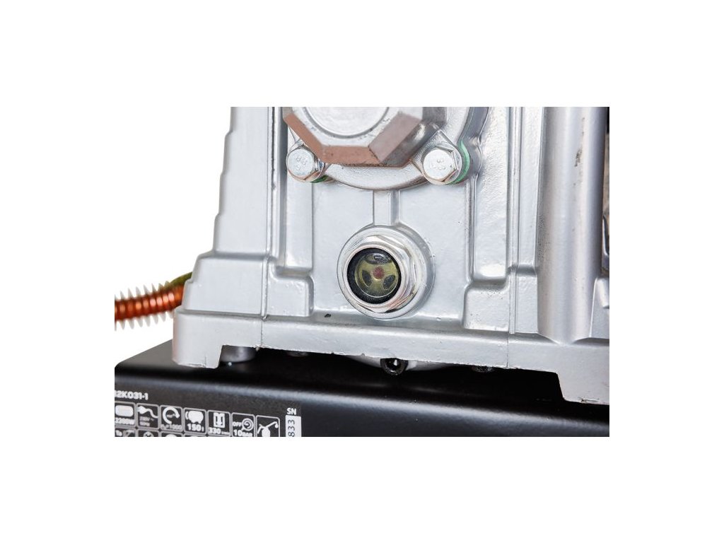 Zařízení pracuje s napájením 230 V / 50 Hz a hlučností 93 dB (LWA). Konstrukce kompresoru zajišťuje snadný přístup ke spojkám, regulaci tlaku a tlakoměrům, což usnadňuje každodenní používání. Praktická rukojeť a kolečka umožňují pohodlnou přepravu po dílně.