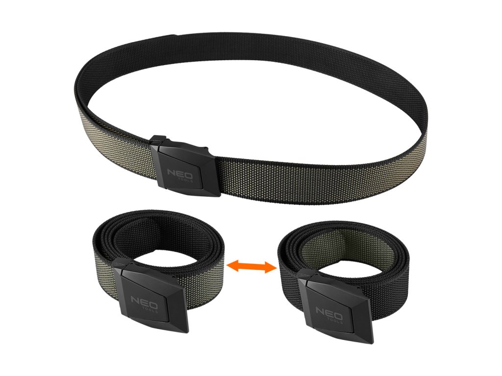 Oboustranný pásek na kalhoty, délka 130 cm 81-903 od společnosti NEO TOOLS je praktický doplněk, který vám umožní měnit vzhled podle potřeby. Je vyroben z polyesteru a má dvoubarevné provedení - černou a šedou barvu, což umožňuje opasek používat z obou stran. Je opatřen sponou ze zinkové slitiny s logem NEO TOOLS, která zajišťuje odolnost a stabilní zapínání. Opasek má délku 130 cm a bude vhodný jak pro každodenní použití, tak jako součást pracovního oděvu.Doplňkové parametry
