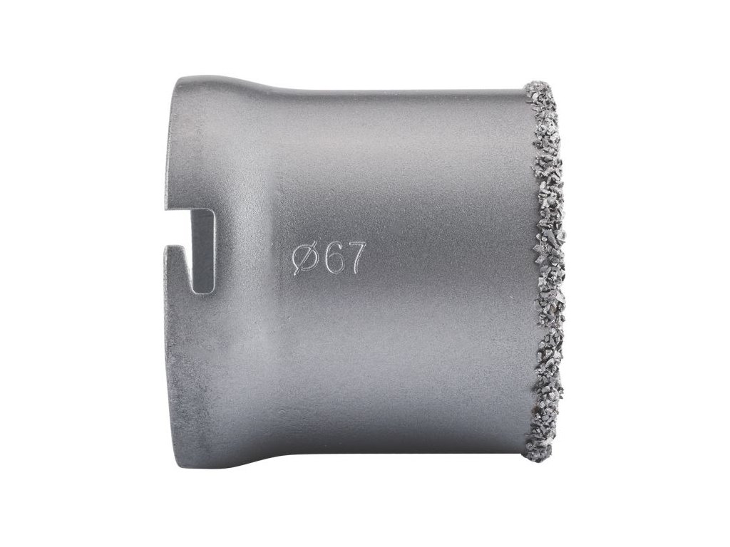 Nástroj má průměr 67 mm, výšku 68 mm a poskytuje možnost vrtání do hloubky až 57 mm. Maximální doporučené otáčky jsou 1 200 ot./min, což zaručuje bezpečnou a plynulou práci bez nadměrného opotřebení.