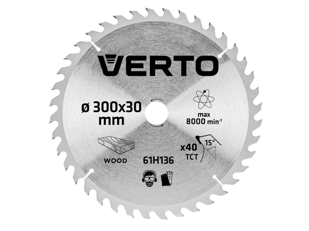 Celokarbidový pilový kotouč VERTO (ref. č. 61H136) s vnějším průměrem 300 mm, zmenšená tloušťka umožňuje získat vyšší řeznou rychlost.