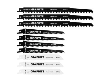 GRAPHITE sada pilových listů do pily ocasky, HCS/BIM, 5 / 6 / 18 TPI, 10 ks (57T566) – univerzální sada pro řezání dřeva, plastů a kovů.