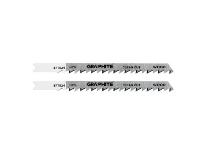 Pilový list GRAPHITE 57T524, HCS, 6 TPI, U-stopka, sada 2 ks. Vhodný pro čisté řezání měkkého dřeva (10–45 mm), dřevotřísky, překližky a MDF.