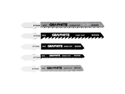 GRAPHITE sada pilových plátků do přímočaré pily, HCS, U-stopka, 6 TPI / 10 TPI, 5 ks (57T529) – univerzální plátky pro čisté řezání dřeva, desek a plastů.