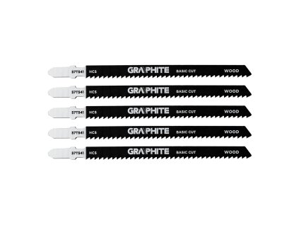 GRAPHITE sada pilových plátků do přímočaré pily 9 TPI, HCS, T-stopka, 5 ks (57T541) – plátky pro řezání měkkého dřeva, dřevotřísky a překližky.