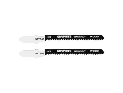 Pilový list GRAPHITE 57T546, HCS, 21 TPI, T-stopka, sada 2 ks. Vhodný pro základní řezání měkkého dřeva (1,5–15 mm), překližky, dřevotřísky a MDF.