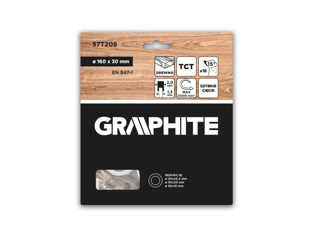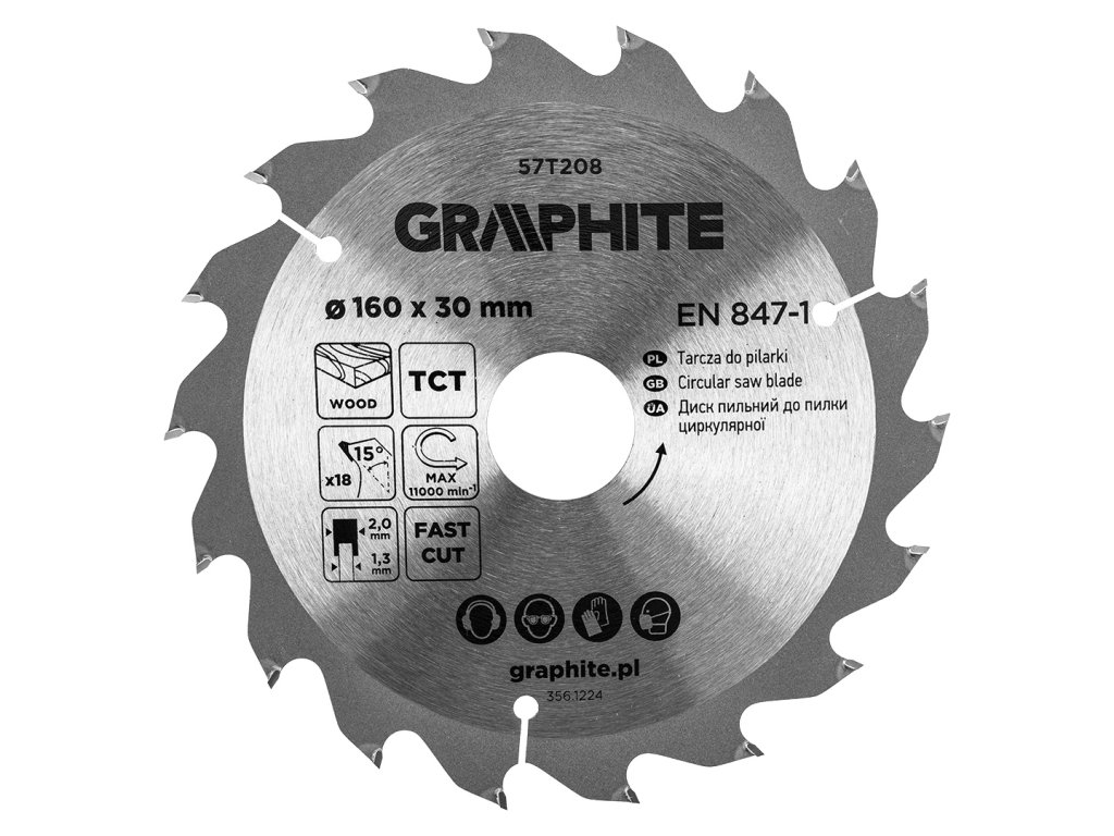 Pilový kotouč GRAPHITE 57T208 s tvrdokovovými (widia) zuby o průměru 160 mm je určen pro rychlé a efektivní řezání dřeva a materiálů na bázi dřeva, jako jsou překližka, MDF nebo dřevotříska. Díky 18 zubům s úhlem 15° a šířkou řezu 2 mm je kotouč vhodný především pro hrubší, rychlé řezy, kde je důležitá vysoká průchodnost materiálem.