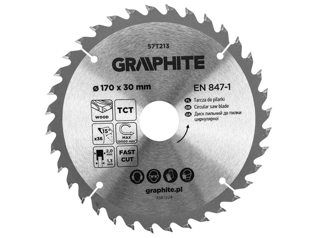 Pilový kotouč GRAPHITE 57T213 s tvrdokovovými (widia) zuby o průměru 170 mm je určen pro čisté a přesné řezání dřeva a deskových materiálů, jako jsou překližka, MDF nebo dřevotříska. Díky 36 jemným zubům s úhlem 15° a šířkou řezu 2 mm dosahuje velmi hladkého povrchu řezu a je vhodný pro precizní a detailní práci.