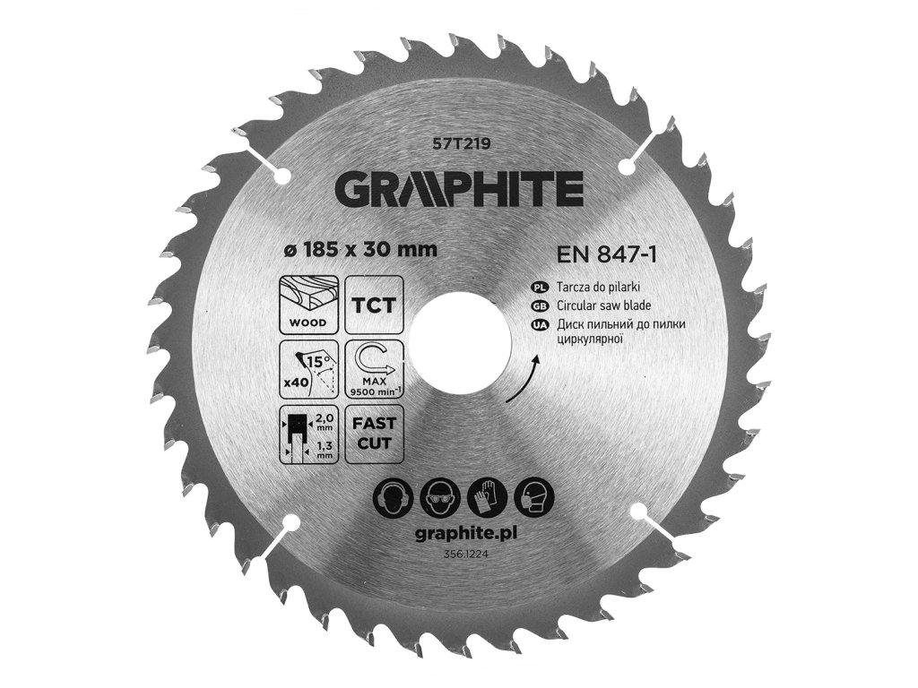 Pilový kotouč GRAPHITE 57T219 s tvrdokovovými (widia) zuby o průměru 185 mm je ideální volbou pro přesné a hladké řezání dřeva a deskových materiálů na bázi dřeva – překližky, MDF nebo dřevotřísky. Díky 40 jemným zubům s úhlem 15° a šířkou řezu 2 mm dosahuje velmi čistých řezů a je vhodný pro detailnější a precizní práci.