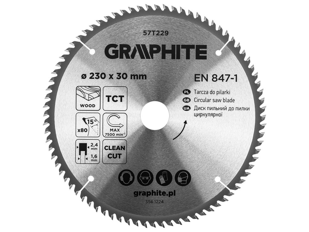 Pilový kotouč GRAPHITE 57T229 s tvrdokovovými (widia) zuby o průměru 230 mm je navržen pro maximálně čisté a precizní řezání dřeva a deskových materiálů na bázi dřeva – MDF, překližky či dřevotřísky. Díky vysokému počtu 80 jemných zubů s úhlem 15° a šířkou řezu 2,4 mm zajišťuje velmi hladký povrch řezu a je ideální pro detailní a dokončovací práce, kde je důležitá přesnost a kvalita.