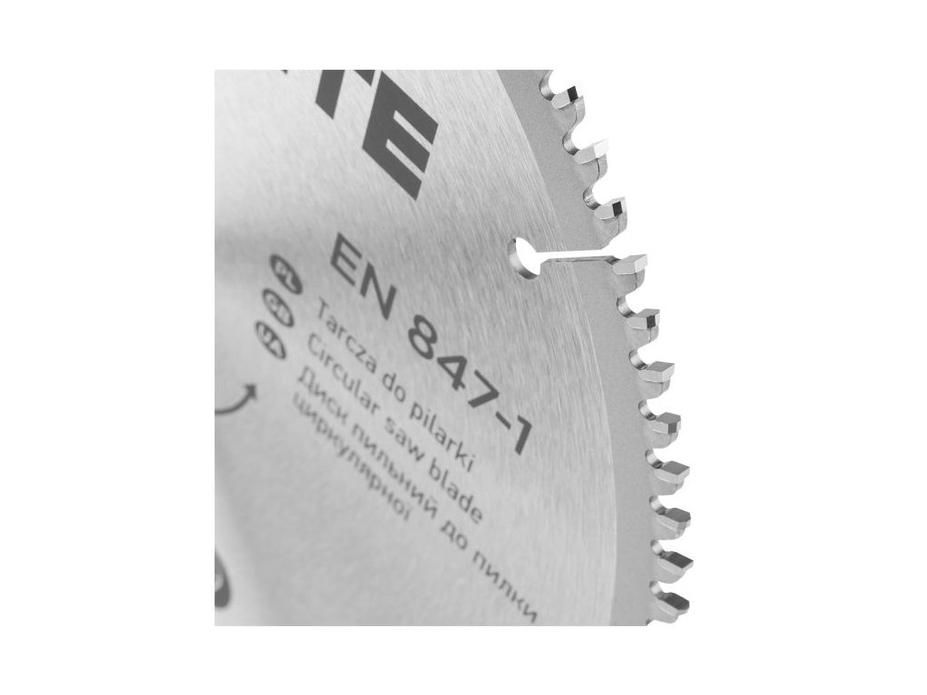 Maximální rychlost otáčení činí 7 000 ot./min, což zajišťuje stabilní a bezpečný provoz. V balení se nachází sada redukčních kroužků (30/25,4 mm, 30/20 mm a 30/16 mm), které umožňují použití kotouče s většinou běžně dostupných pil. Kotouč je vyroben v souladu s evropskou bezpečnostní normou EN 847-1.