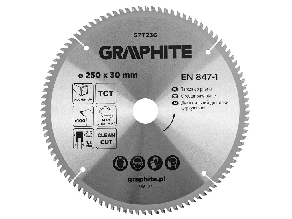 Pilový kotouč GRAPHITE 57T236 s tvrdokovovými (widia) zuby o průměru 250 mm je navržen speciálně pro čisté a přesné řezání hliníku. Díky vysokému počtu 100 jemných zubů a šířce řezu 2,6 mm dosahuje velmi hladkého povrchu řezu a minimalizuje tvorbu otřepů, což ocení profesionálové i nároční kutilové.