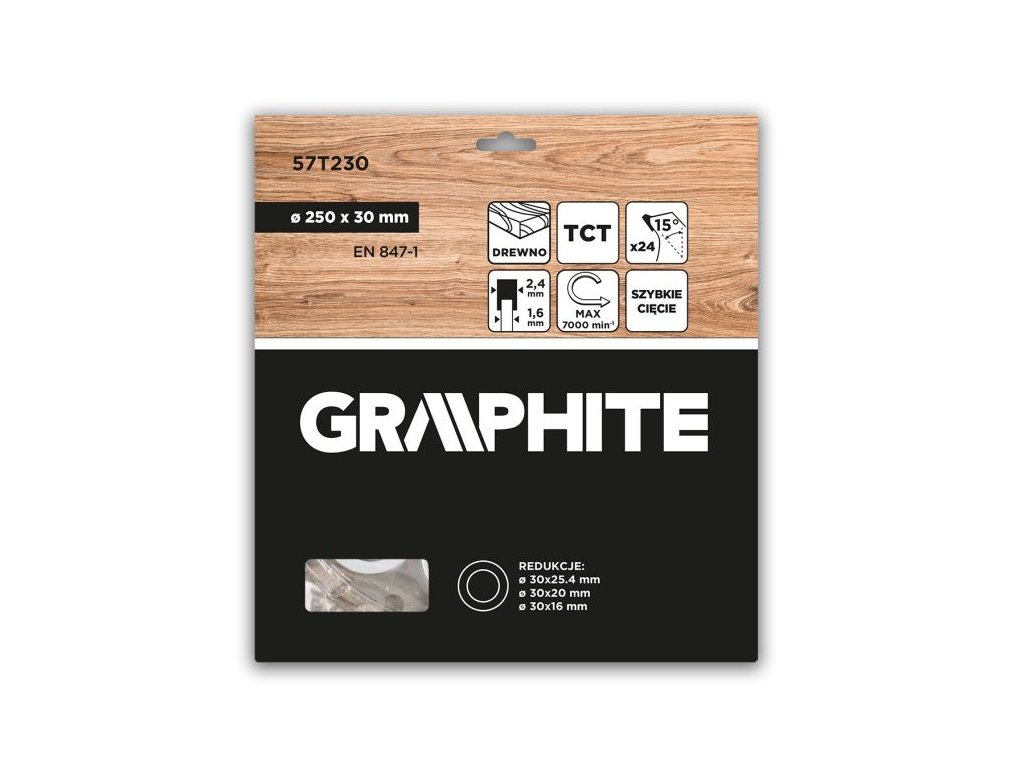 Pilový kotouč GRAPHITE 57T230 s tvrdokovovými (widia) zuby o průměru 250 mm je ideální pro rychlé a efektivní řezání dřeva a deskových materiálů, jako jsou MDF, dřevotříska nebo překližka. Díky 24 zubům s úhlem 15° a šířkou řezu 2,4 mm je kotouč vhodný především pro hrubší a rychlejší řezy, kde je prioritou rychlost a průchodnost materiálem.
