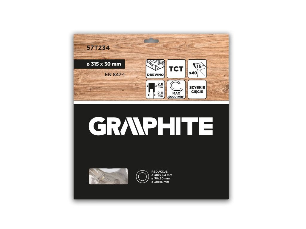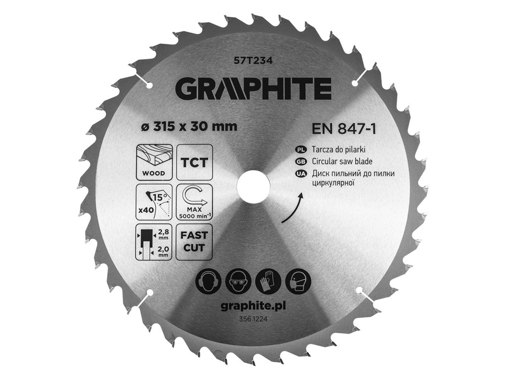 Pilový kotouč GRAPHITE 57T234 s tvrdokovovými (widia) zuby o průměru 315 mm je určen pro spolehlivé a efektivní řezání dřeva a deskových materiálů, jako jsou MDF, překližka nebo dřevotříska. Díky 40 zubům s úhlem 15° a šířkou řezu 2,8 mm zajišťuje vyvážený poměr mezi rychlostí a čistotou řezu, takže je vhodný pro univerzální použití v dílně i na stavbě.