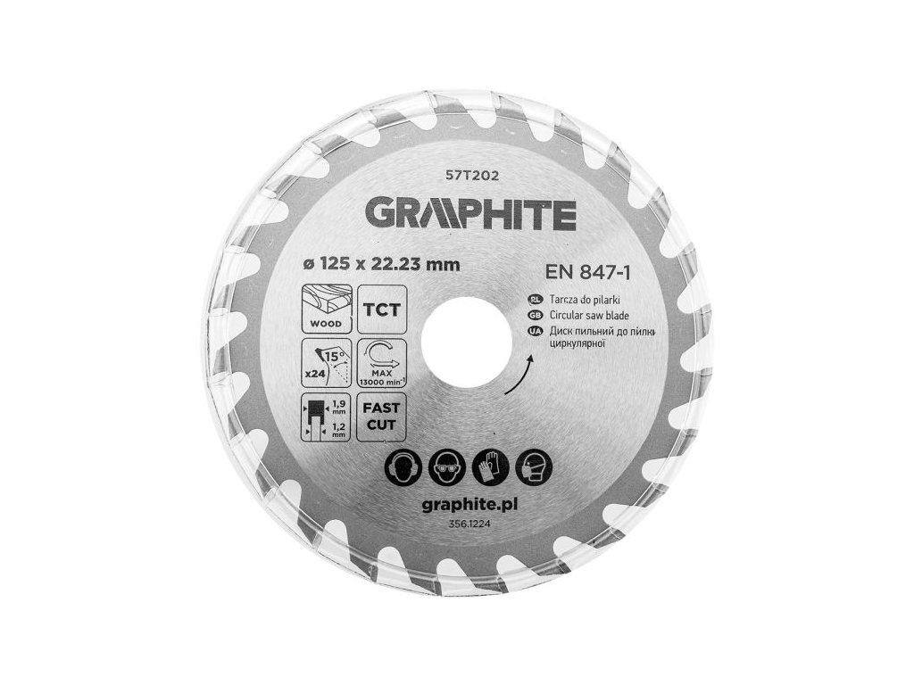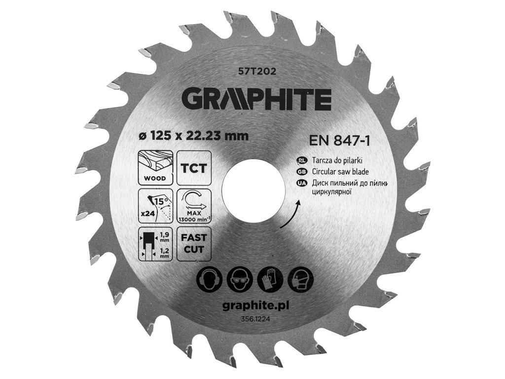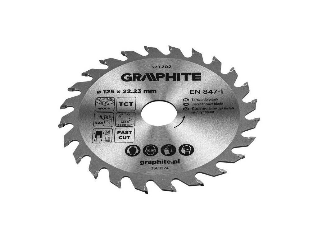 Pilový kotouč GRAPHITE 57T202 s tvrdokovovými (widia) zuby o průměru 125 mm je určen pro rychlé a efektivní řezání dřeva a deskových materiálů na bázi dřeva – MDF, překližky nebo dřevotřísky. Díky 24 zubům s úhlem 15° a šířkou řezu 1,9 mm dosahuje vysoké průchodnosti materiálem a je vhodný pro hrubší, ale rychlé řezy.