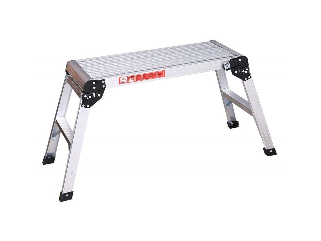Pracovní hliníková plošina o rozměru 75 × 30 cm a výšce 52 cm je ideální pomocník pro malíře, řemeslníky i domácí práce. Díky skládacím nohám s bezpečnostní pojistkou se snadno skladuje a rychle připraví k použití.