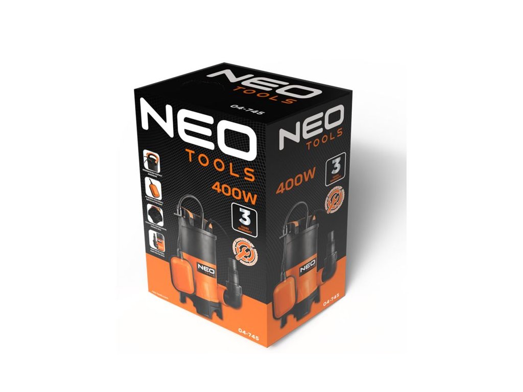 Ponorné čerpadlo na špinavou vodu NEO TOOLS 04-745 je spolehlivým pomocníkem pro efektivní odčerpávání vody ze sklepů, staveb nebo studní. Díky výkonu 400 W a kapacitě až 8 000 l/h si poradí s velkým množstvím vody v krátkém čase.