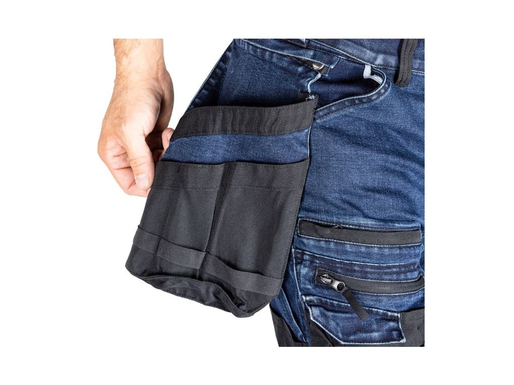 Pracovní kalhoty DENIM, výztuhy Cordura, odnímatelné kapsy, tmavě modrá